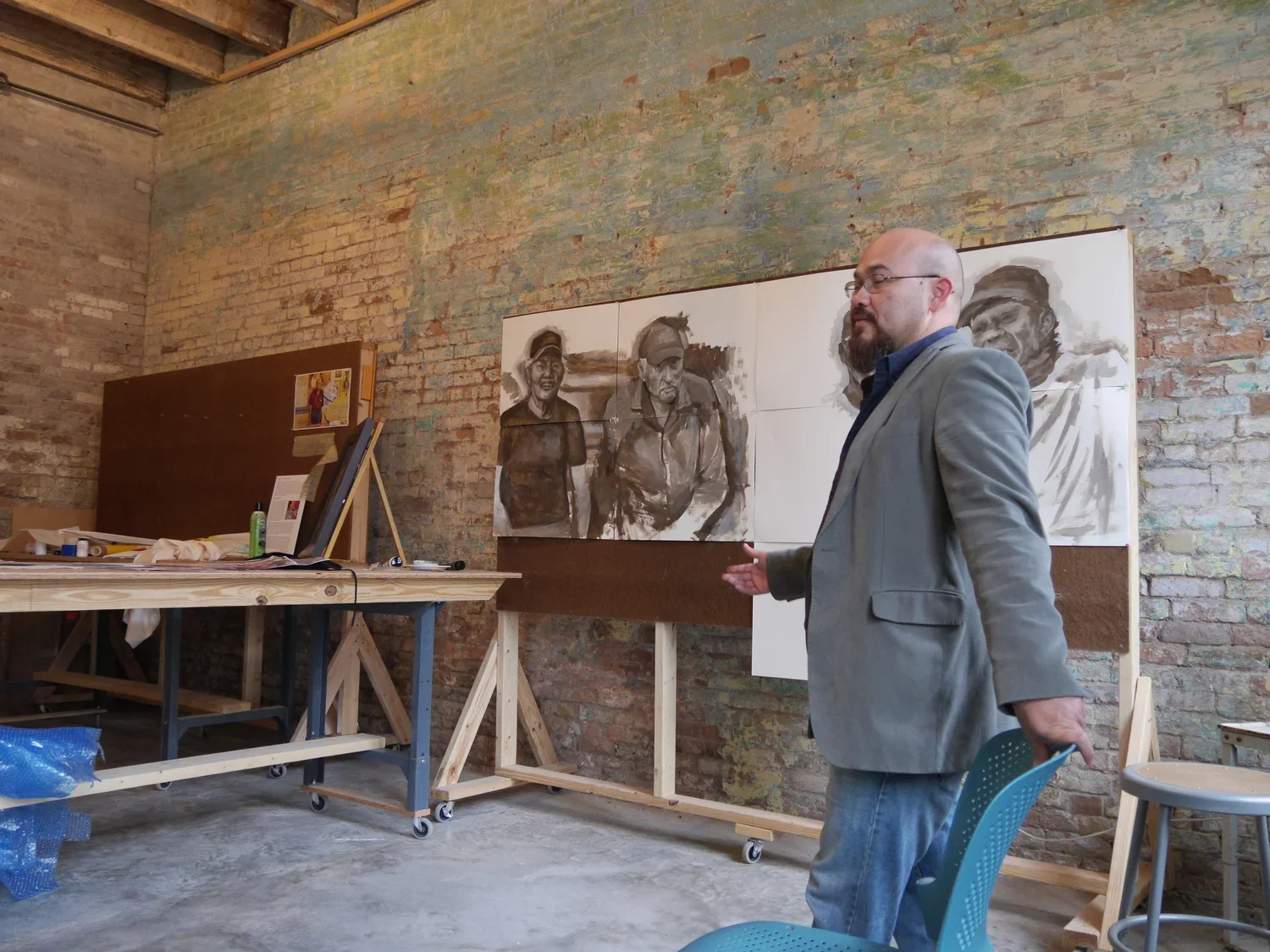 Rigoberto Gonzalez will work over the upcoming months on a large scale, moveable mural based upon a series of interviews he will conduct with Brownsville residents. As a longtime resident of the Rio Grande Valley, he is particularly interested in the cultural traditions of the region and the stories that accompany them. At the recent AVAI Open Studio event, Playing with Production, Gonzalez invited attendees to sketch their ideas for the mural and to share stories of their experiences downtown.