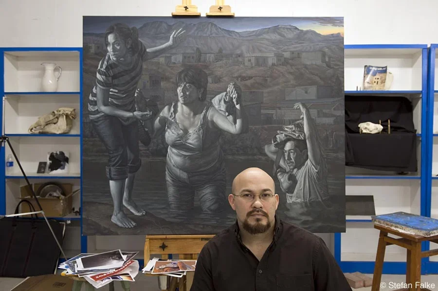 Rigoberto Gonzalez was born in 1973 in Reynosa Tamaulipas, Mexico, and currently lives in southeast Texas near the Rio Grande in the city of Harlingen. He holds a B.F.A. from The University of Texas at Pan America in 1999 and an M.F.A. from the New York Academy of Art in 2004. Gonzalez’s work has been exhibited at The Smithsonian’s National Portrait Gallery, Washington DC (2016), the Hå gamle prestegard, Norway (2015), National Museum of Mexican Art, Chicago, IL (2015), The Emma S. Barrientos Mexican American Cultural Center, Austin (2012), The Houston Art League, Houston (2012), The Stanlee and Gerald Rubin Center for the Visual Arts, El Paso (2011), Texas Biennial, Austin (2011), Las Cruces Museum of Art, Las Cruces, New Mexico (2010), Roswell Museum and Art Center, Roswell, New Mexico (2009), Harlingen Heritage Museum, Harlingen (2008), Casa de la Cultura, Reynosa Tamaulipas, Mexico (2006) and Richardson Art Gallery, The University of Texas at Brownsville (2005). Rigoberto A. Gonzalez has completed artist residencies at the Coronado Studios Serie XX Project Artist Residency, Austin (2013) Roswell Artist Residency Program, Roswell, New Mexico (2008/09) and Rancho del Cielo, University of Texas at Brownsville and Texas Southmost College (2004), and received grants from the National Association of Latino Arts and Culture (2009/10). He has been the subject of artist profiles on PBS, NPR, and Televisa.