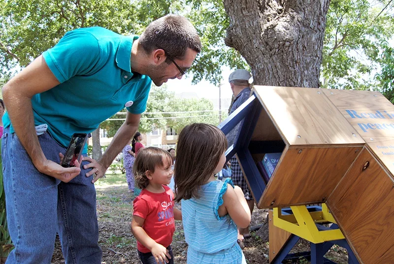 The memorial libraries are part of our Little Free Library/Libros Libres program. Little Free Libraries/Libros Libres is a literacy and community based design initiative in Dallas, Texas that uses free book exchanges to build community and promote a culture of reading. Inspired by the Little Free Library movement (www.littlefreelibrary.org), these small neighborhood book shelters operate under the guiding principle of “take a book, leave a book.” The project uses community engagement and design to makes books available in a variety of publicly accessible locations, supporting the health of the neighborhoods by fostering collaboration and relationships.
