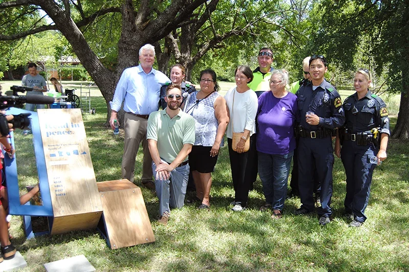 buildingcommunityWORKSHOP hosted the official opening reception of the DPD & DART Officer Memorial Little Free Libraries last Saturday, July 22nd at South Side on Lamar.