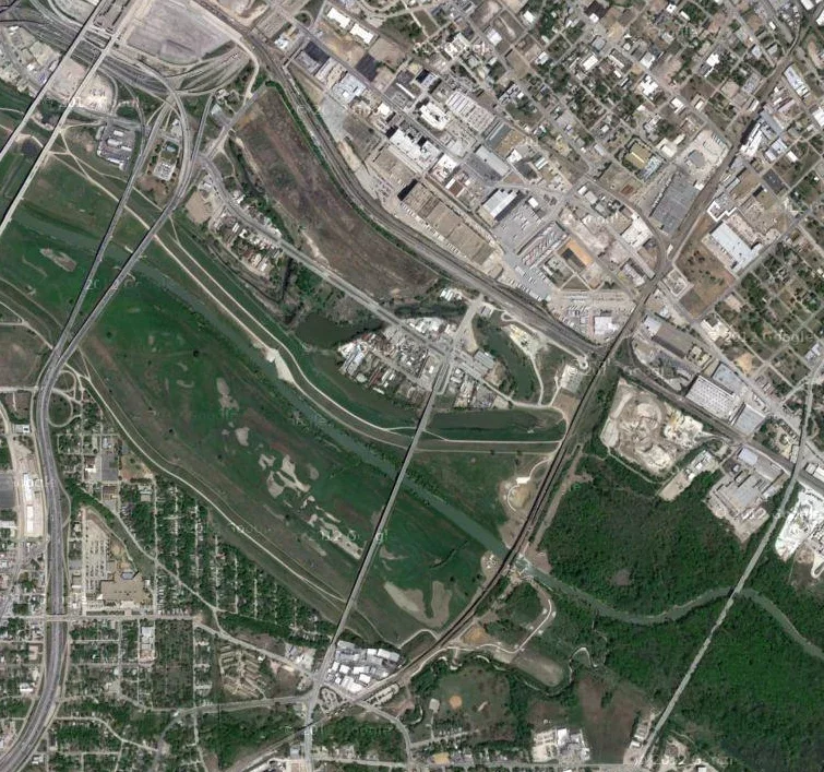 Named for the Rock Island Railroad that was extended to serve the area, Rock Island Street was developed from the river bottom reclaimed after the construction of the levees channelizing the Trinity River. Framed by the old meanders and conceived as an industrial area, the street remains populated by recyclers and architectural salvage companies. Working to share how existing buildings and businesses can be a part of change, property owners initiated a public art campaign and organized a street festival to spread neighborly good will.