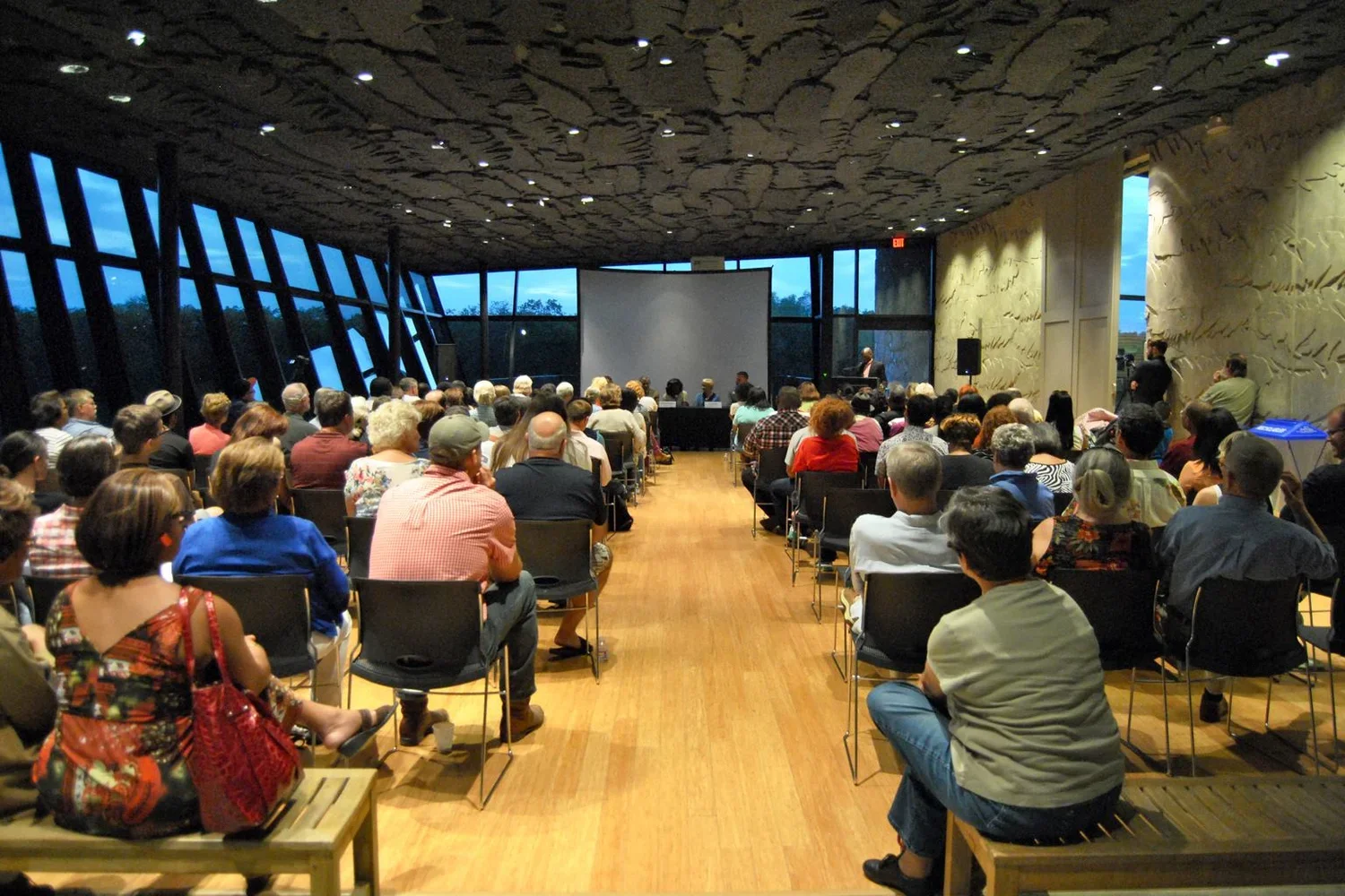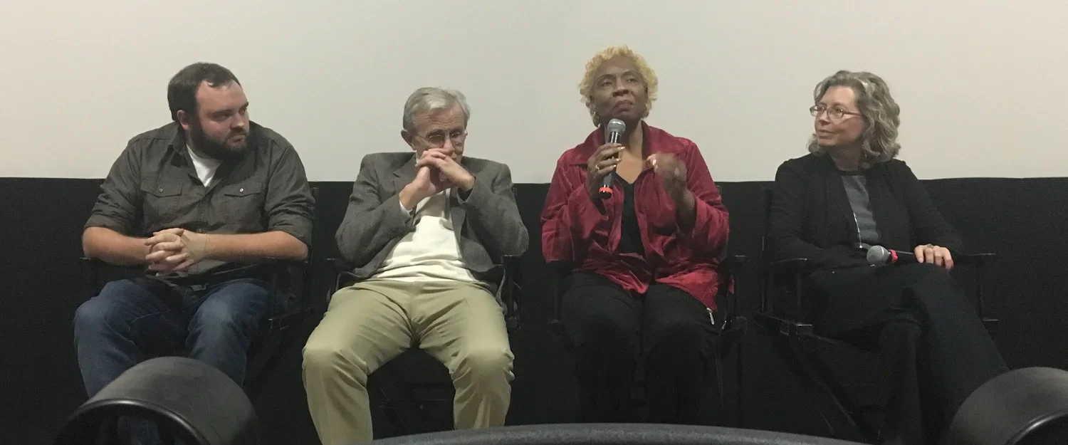 Approximately 100 people were in attendance, most of whom joined us after the screening for a panel discussion moderated by GreenSource DFW’s Julie Thibodeaux. Joining her on the panel were Cynthia Herring-Flanagan, a former neighbor to the Deepwood Dump, Mike Daniel, an attorney with Daniel & Beshara P.C., T Hanson, former Director of Operations at the Trinity River Audubon Center, and Craig Weflen, [bc]’s Media Associate and the filmmaker for Out of Deepwood. As with past screening events, Cynthia was a star, sharing further insights into the continuing struggles faced by her and her former neighbors.