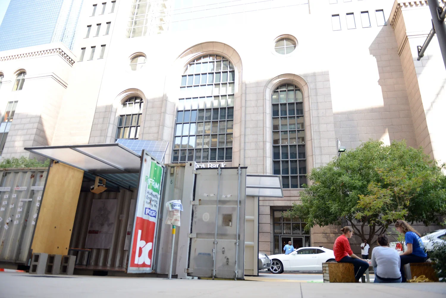 Down the road on South Ervay, we also set up Dallas's first Parklet in front of our office. Created in partnership with Downtown Dallas, Incorporated, the parklet carries the spirit of PARK(ing) Day by making the transformation from vehicle parking to pedestrian space more permanent.