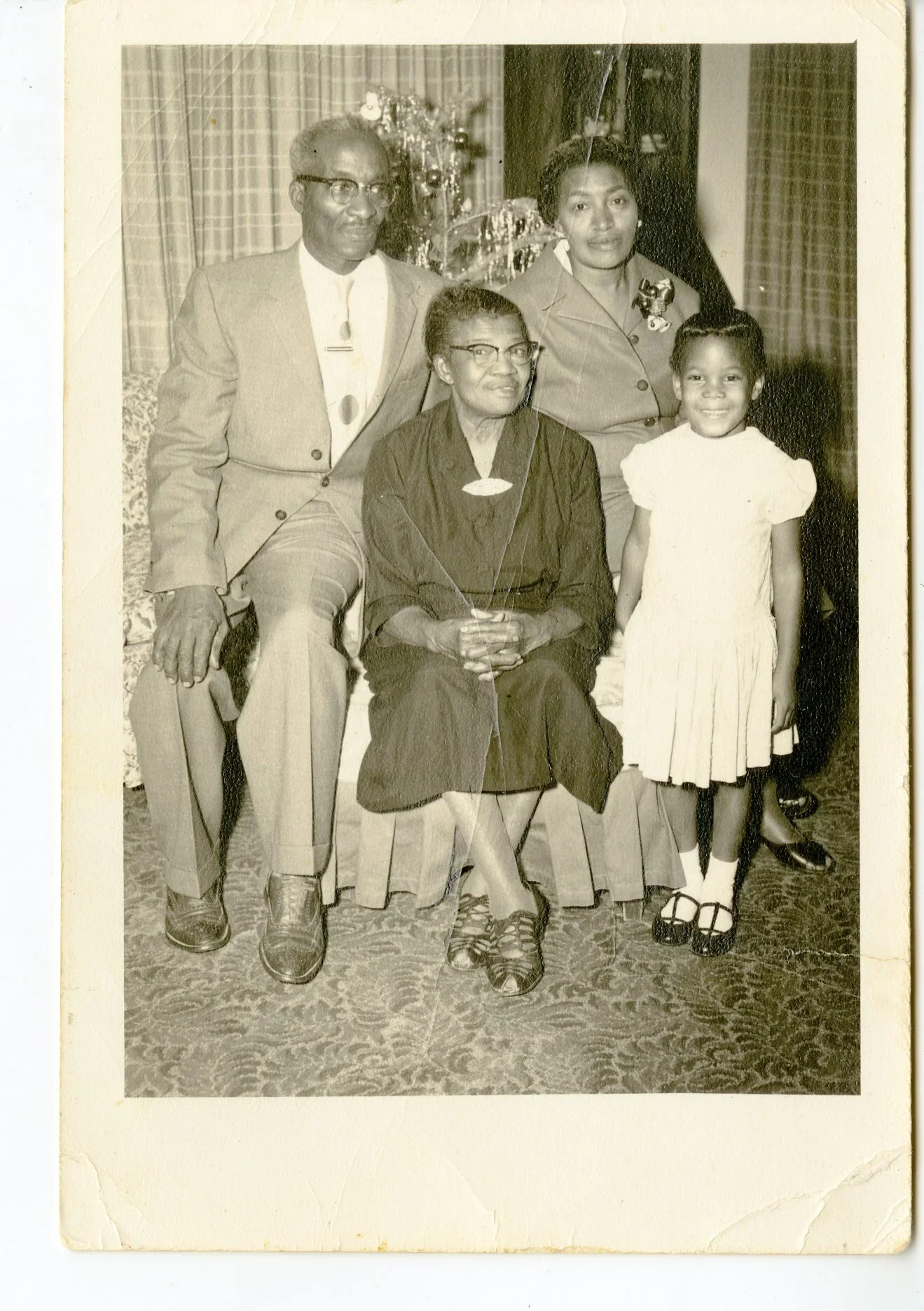 Mrs. Laura Belle Foster and Mr. P.H. Foster (center and left) and their family. Photo courtesy of Mrs. Delveeta Thompson, Mrs. Foster’s grand daughter, right.