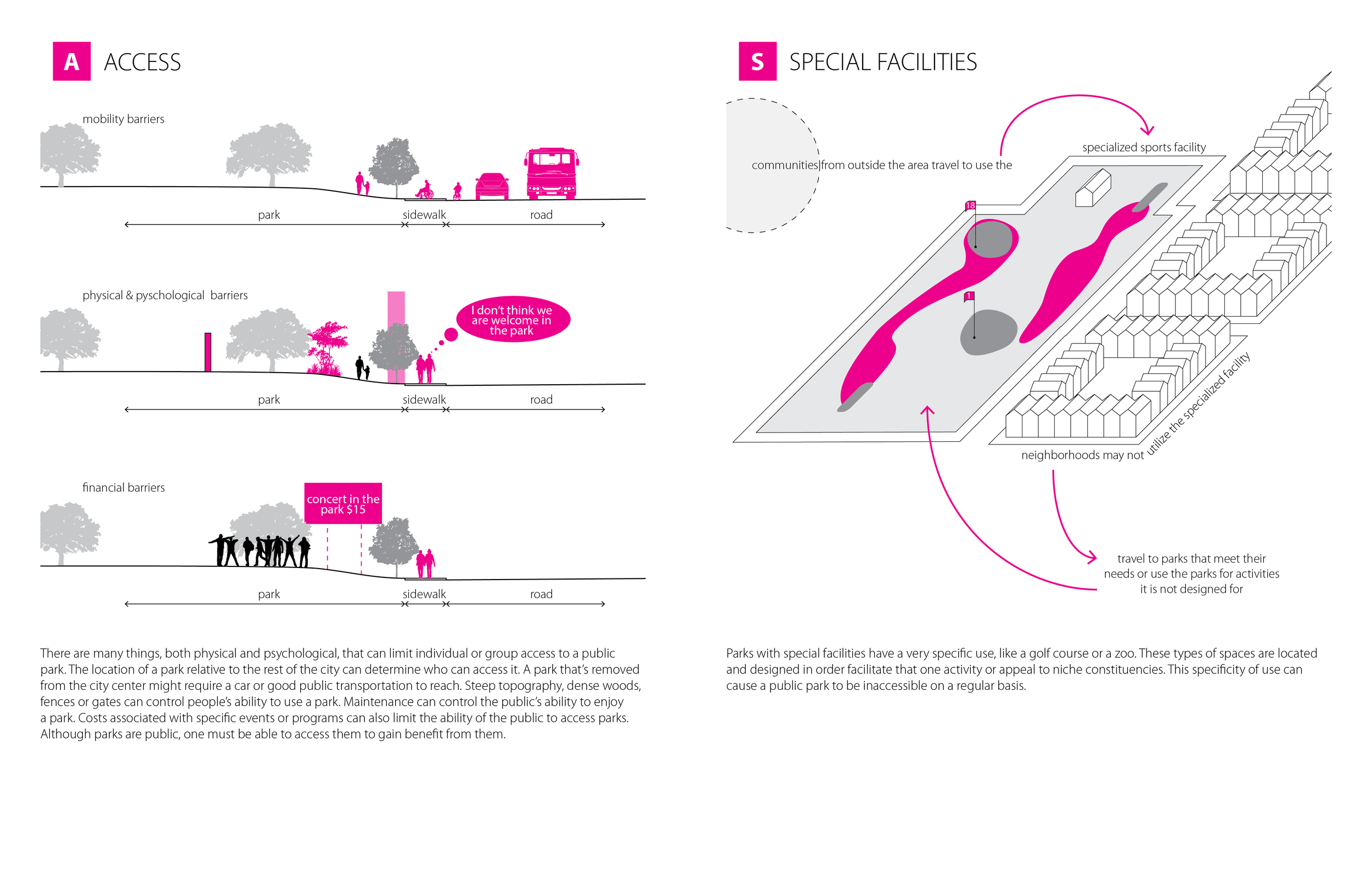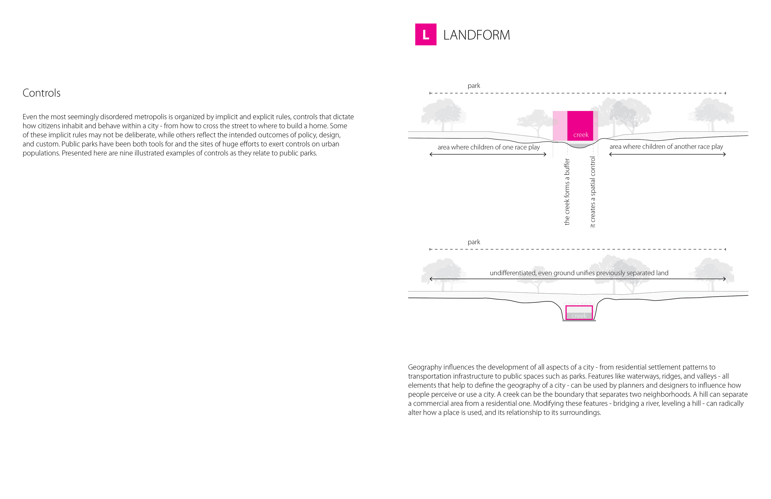This exhibit provides the tools to interrogate the physical city and reveal the multiple ways in which we plan, build, and interact with it, exercising these tools through the lens of public parks and race. As a result of this work, parks will no longer be viewed simply as the green spaces on the map but will be recognized as places of recreation, conflict, celebration, engagement, protest, and daily life. Public parks will be seen as tools used to control social, cultural, economic, infrastructural, and civic activities.